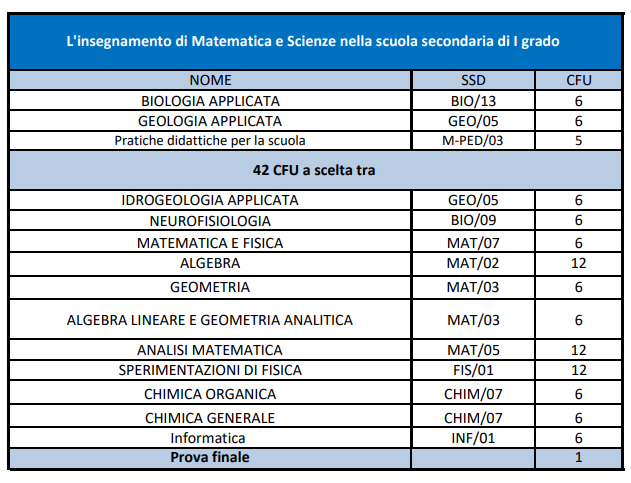 - Laureati in materie scientifiche, che intendono accedere alla classe di concorso A-28 (Matematica e scienze) , al fine di svolgere l’attività d’insegnamento.